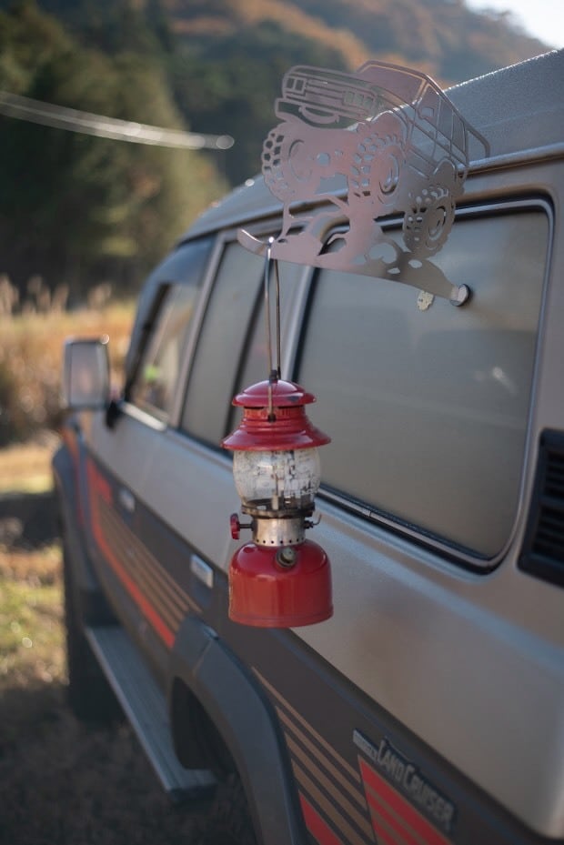 車のレインガーター(雨どい)にひっかけて使うランタンハンガーです